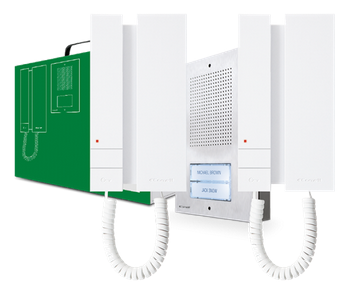 Dvostanovanjski avdio domofonski komplet, 4+N žični sistem.