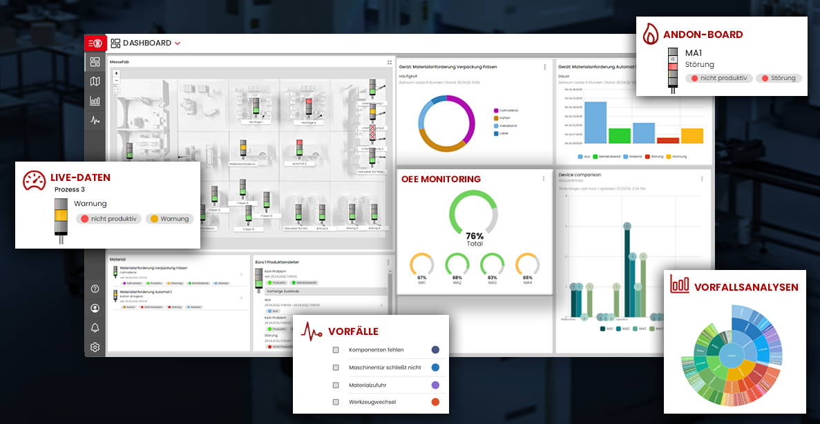 Vseskozi beležite in analizirajte strojne in proizvodne podatke v proizvodnji, logistiki pošiljanja in na ročnih delovnih postajah – za učinkovito proizvodnjo in optimizacijo procesov.